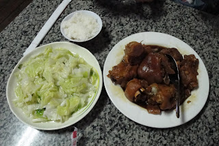 這時天色已經暗下來了,走在台九線上,看見滿妹豬腳,大家肚子 都餓了,於是在此先進晚餐,等會再趕路好了。