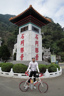 在福隆小七磕了一個麵包香蕉牛奶,滿足了一下。就繼續往礁溪前進,過了草嶺隧道後,兩人照張像留念。