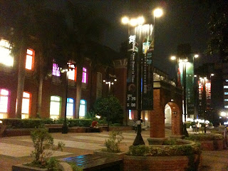 晚上說服老婆出去走走,聽說舊市府已經改成台北市當代藝術館,晚上有燈光氣氛佳,於是帶老婆去逛逛。還真的不錯,不是太熱,坐在外面的街旁,喝點飲料或咖啡,欣賞牆上的燈光跟來往車輛,蠻有回味過去的情景。