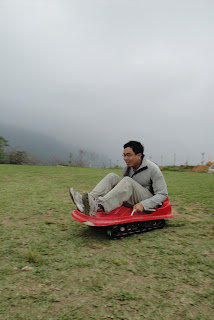 忽然看到大草原上有人在滑草,於是大夥快步來到草原高地,看看別人滑草。Nancy,狄倫,跟Tracy 的同事躍躍欲試,都想要嘗試看看。聽說滑完很過癮喔。