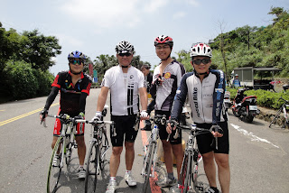 大家下滑到坪林,小七人太多了,於是到全家去補給休息,我也看到小惡魔大家在小七休息。補給完後,大家開始爬上縣界,應該是我們先出發的,可是,小惡魔第一個戴倫,輕輕鬆鬆的從我旁邊刷過,再來 Mika再來 Landy,真是太強了,我只能遠目,送他們離開。努力地爬終於來到頭城縣界,忽然看到一個穿INBB 車一的人,原來狄倫已經到了,他說七點半騎上來,沿途都沒看到他,卻在我們前面,真是太厲害了。