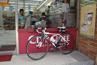 由於設定是輕鬆騎,於是慢慢走河濱到動物園,昨天才經過車友很多,現在只剩我一個人。一直來到石碇的小七休息兼補給,整個店門口只有我一台腳踏車,其他位置都被汽車跟機車占滿了...