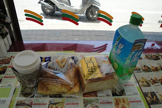 就這樣一路慢騎,來到雙溪的小七,休息兼補給,買了兩個麵包外加舒跑咖啡當午餐,大塊朵頤一番。