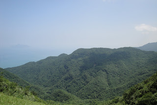 天很藍,雲很白,眺望遠山,好美的風光,應該慶幸還是不幸,因為抽筋才看到這美麗的景緻,抽筋讓我好痛好辛苦....Orz。就這樣 1.1km的階梯,我爬了40幾分鐘才到。