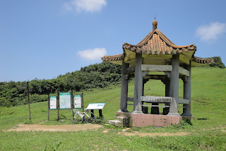 一路上慢慢爬坡,其實不陡,可是我的腿有抽筋現象了,趕快下車休息,再上車,就這樣10km的路騎了一個多小時...Orz 比預計時間晚很多。沿著指標,一直到路的盡頭,才發現,指標在間公廁旁邊。