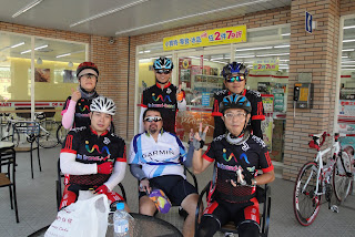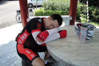 出了自行車道後,往台三的方向,一路前進,大家都很熟了,騎過很多次。一直到轉進三峽的大同路上的便利商店,大家休息兼補給,今天天氣真好,雖然有雨神小雷隨行,但是有風無雨,還出太陽哩,真好。然後又再次上路,一直到爬坡到桃園的縣界,才休息等候。