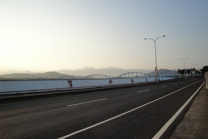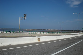 途中經過台鹽場,很熟悉的路況出現了,新竹88K就是從這裡回頭的,一路上上下下,阿圓一路頂風領騎,想不到西濱要騎這麼遠。途中經過一處大橋,阿圓停下來照相,也讓我的大腿有機會休息一下。