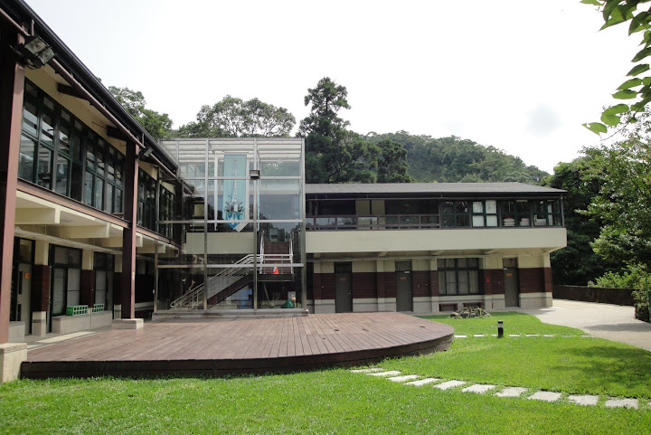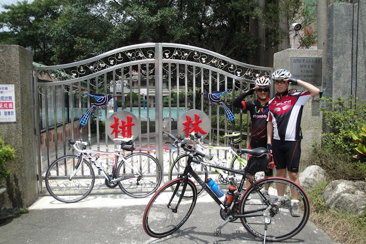 休息了一陣子,才繼續啟程,從此開始,就是沒騎過的道路了。一路上上下下,慢慢爬坡,大家的水壺都快見底了,我還省著喝,沿路都沒有商店,好慘。來到新北市英速魔法學院,覺得蠻漂亮的,停下來拍照,小言去找水,還真的有救命飲水機,大家拼命喝水灌水。這裡還真的蠻漂亮的喔。