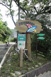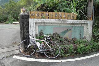 北42的起點,跟北43下滑是一樣的,剛開始不知是幾趴的坡啊,好陡好陡,真的差點爬不上去,好累,怎麼有連續這麼陡的坡...orz 爬到上氣不接下氣,好不容易緩一點,慢慢的爬,差點喘不過氣。一直來到漁光國小,總算可以停下來休息。忽然發現,這是北43下來的地方,想起跟車神 Nick 騎北43,就是從這裡滑下來的。