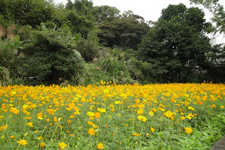 接著繼續尋找史教官他們,沿路都是美麗的花海,稻田,真是漂亮。一路找不到史教官他們,還警張了一下,後來出現在我身後,原來他們到一個磚窯屋去參觀,我都沒看到。集合後就繼續前進,慢慢繞了一大圈,來到龜山苗圃的軍營旁。