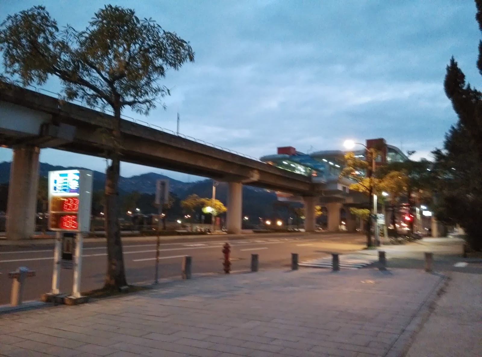 過了永安步道,下滑勝安宮後準備爬坡,沒多久,看到分岔點,應該往上繼續爬,威利說,想到岸邊拍照,於是先下滑,還好不長也不陡,不然就慘了。